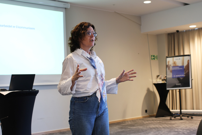 Paula Nordbø snakket om forbedringene i meldingsutvekslinger i Norsk Helsenett i flyten mellom helseforetak og kommunene. Basismeldinger som pleie og omsorgsmeldinger (PLO) kommer nå automatisk inn i fagsystemene. Bedrer innsikt og flyt, og nå kan man også se at meldinger er mottatt.